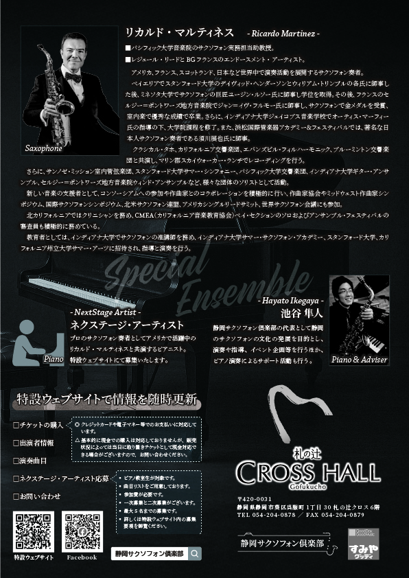 | お問い合わせ | 静岡サクソフォン倶楽部(代表:池谷隼人) ShizuokaSaxClub@gmail.com |