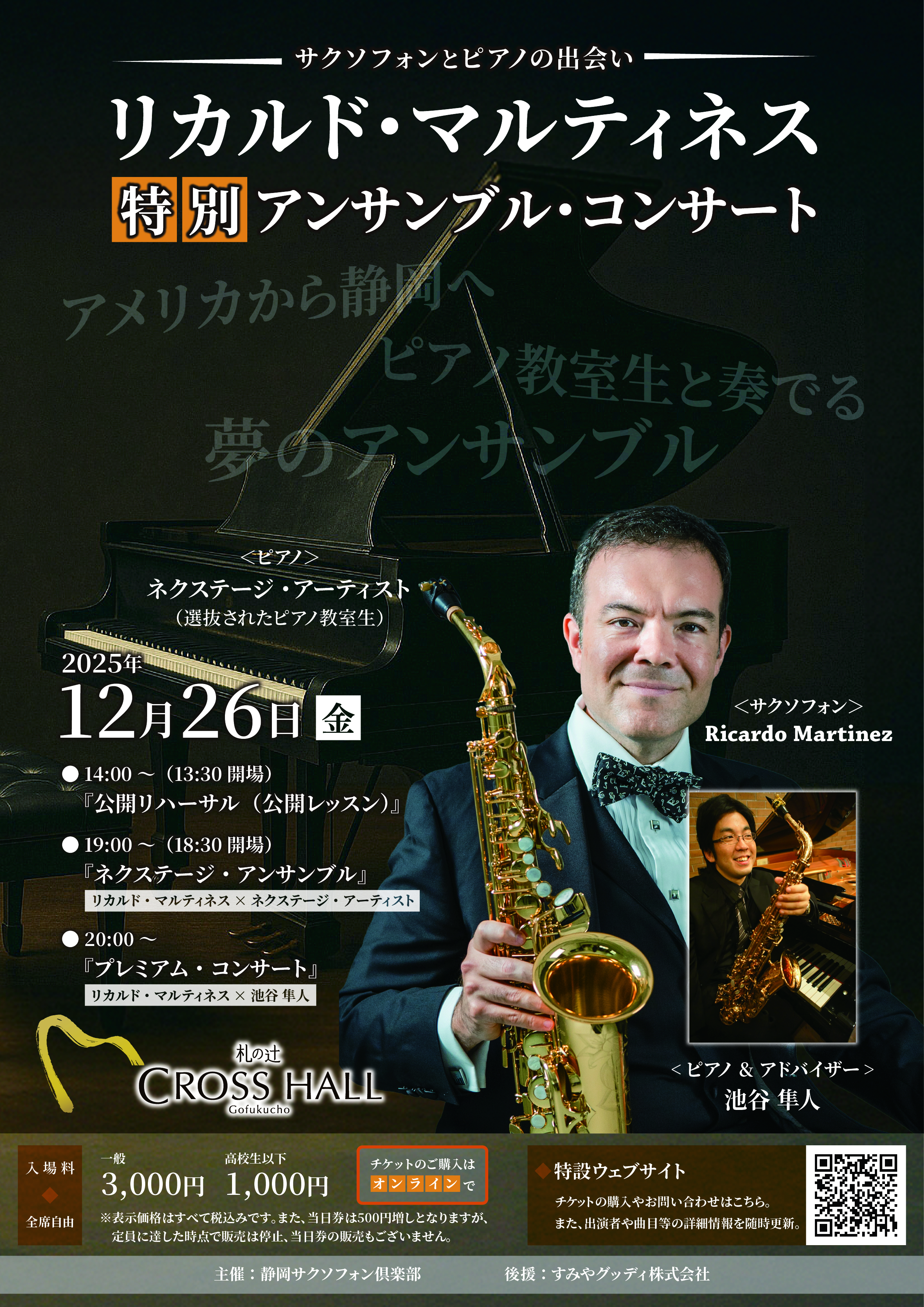 | 公演名 | サクソフォンとピアノの出会い リカルド・マルティネス 特別アンサンブルコンサート |